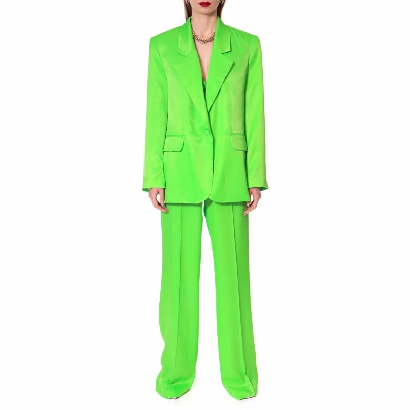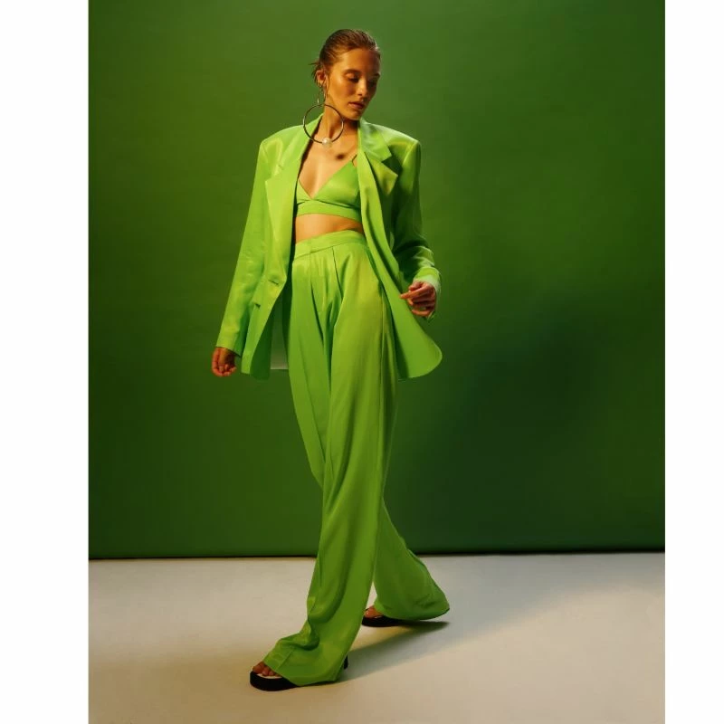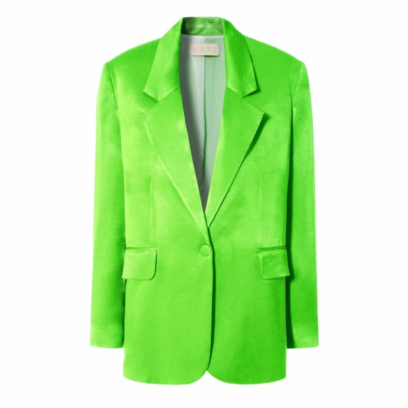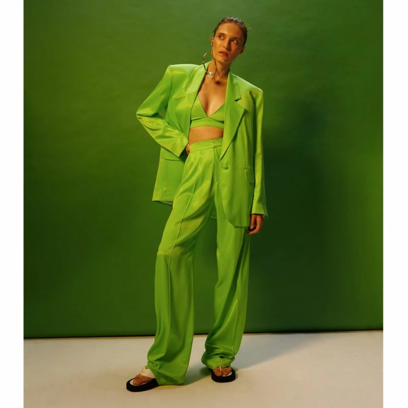 A single-breasted satin blazer with a loose, slightly nonchalant cut with a construction craftsmanship characteristic of AGGI projects accentuated in a stronger, definitely emphasized line of shoulders and precisely modelled lapels. Long sleeves. Softly draping, noble satin fabric allows you to discover both the daytime and evening character of the jacket in the design. Match it with JESSIE satin pants and an ASHA top, or throw it over your shoulders with a matching evening dress. Everything on a delicate chiffon lining.