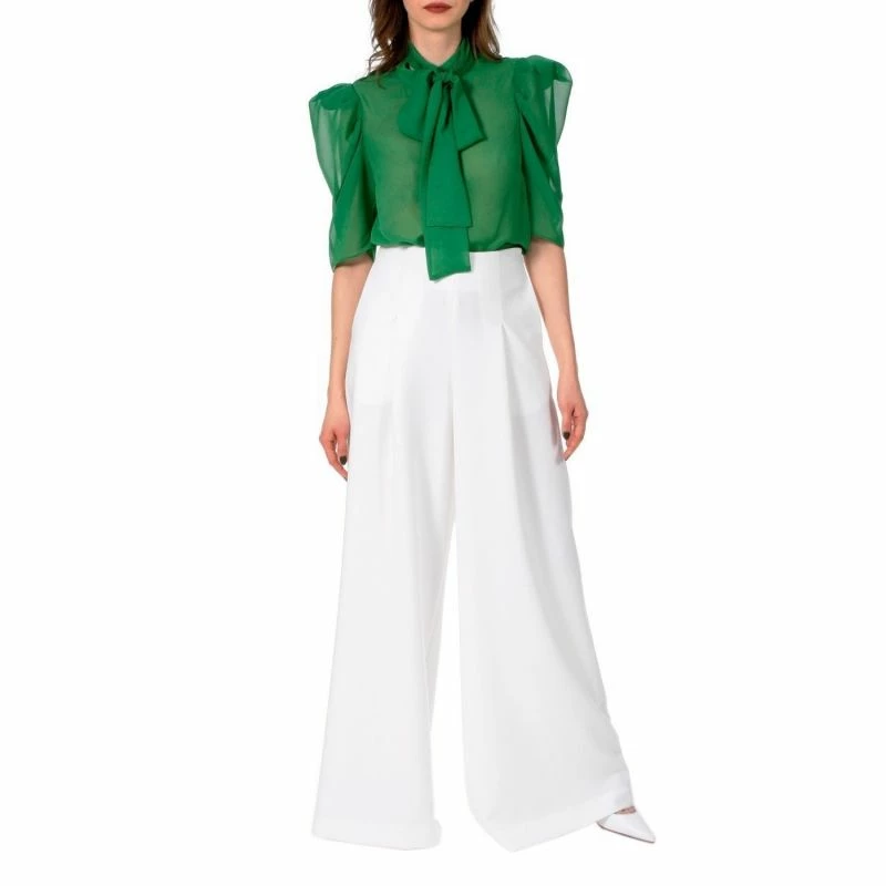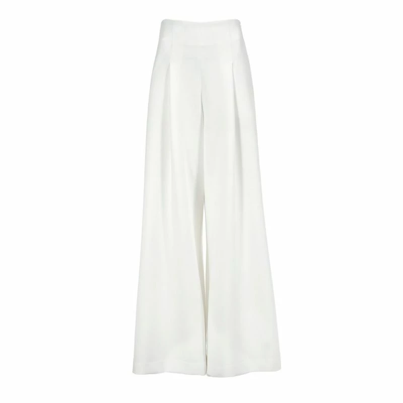 Elegant pants with wide legs and a high waist. Hidden pockets in the side seams, side zip fastening. An elegant and sophisticated style for special occasions. For a better fit, it is recommended to buy a smaller size. Making a perfect match with Samantha Cloud Dancer Blazer.