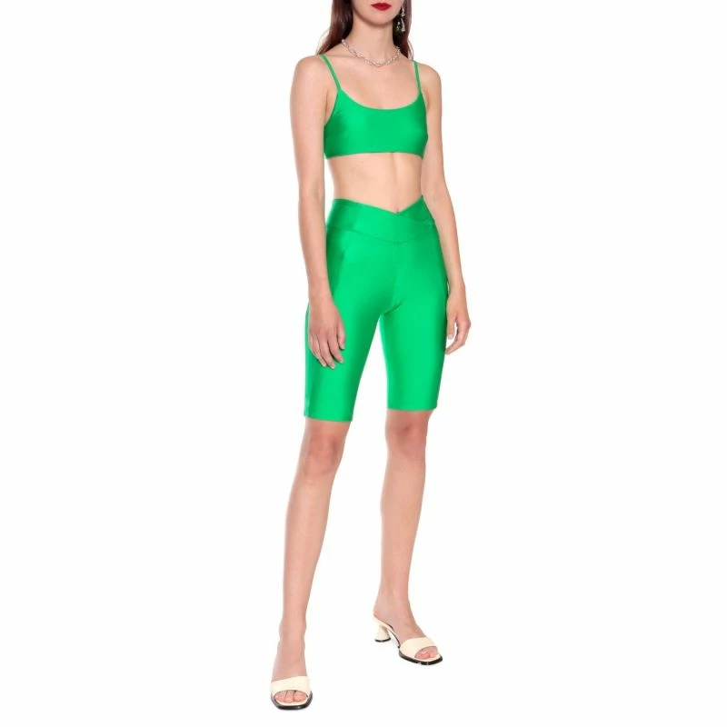 A bralette crop top in a juicy shade of Brazilian green is a great choice for the beach and as the perfect top for an oversize jacket. A fitted bralette made of highly elastic, perfectly fitting glossy material.